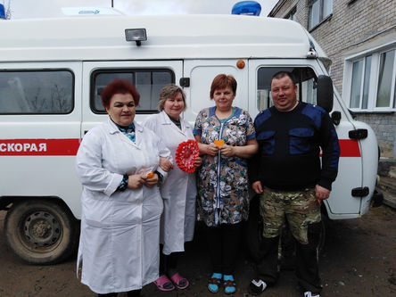 Библиотекари провели поздравительную акцию и вручили поделки работникам скорой помощи.