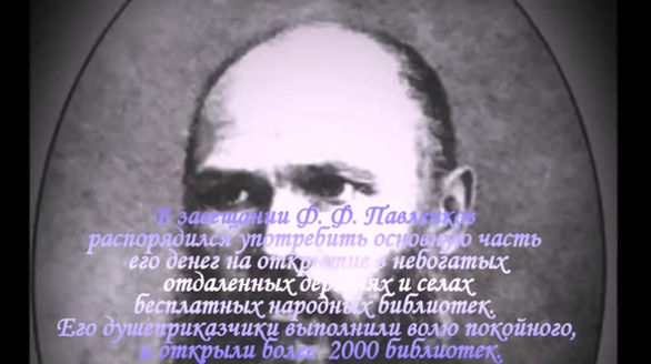 Все свое состояние и доходы от продажи книг Флорентий Павленков завещал на организацию народных читален и библиотек: « ... чтобы книга была заброшена в самые бедные глухие места и, по возможности, на большем пространстве России». На завещанные им средства с 1901 по 1911 год в 53 российских губерниях было открыто две тысячи бесплатных библиотек-читален.